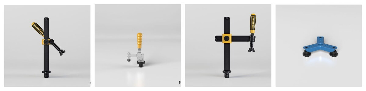 Модифицированный вариант предыдущих моделей. Основа конструкции — с-образный крепкий корпус с тремя зажимами. Пятки струбцины находятся под прямым углом друг к другу.