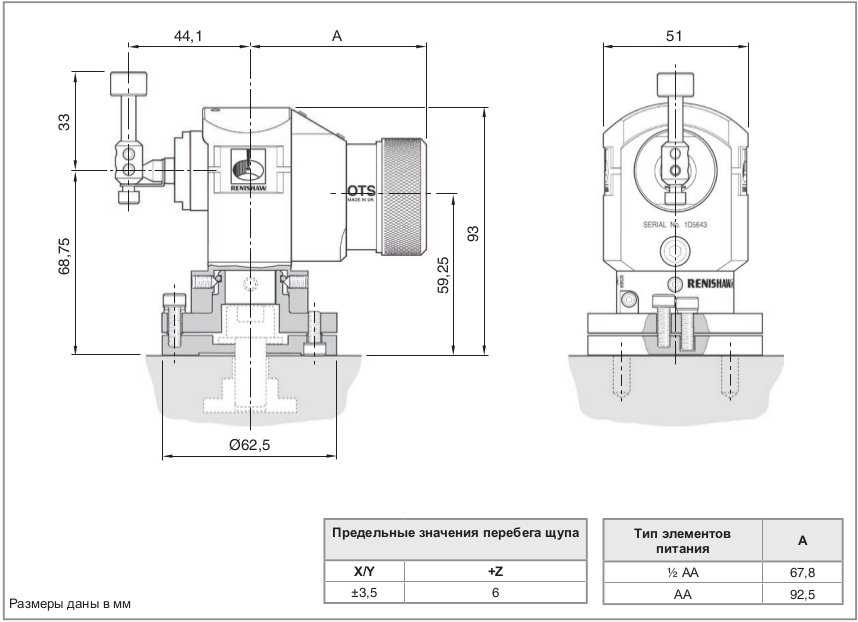 Дисковый щуп Ø12,7 мм или квадратный щуп 19,05 × 19,05 мм |