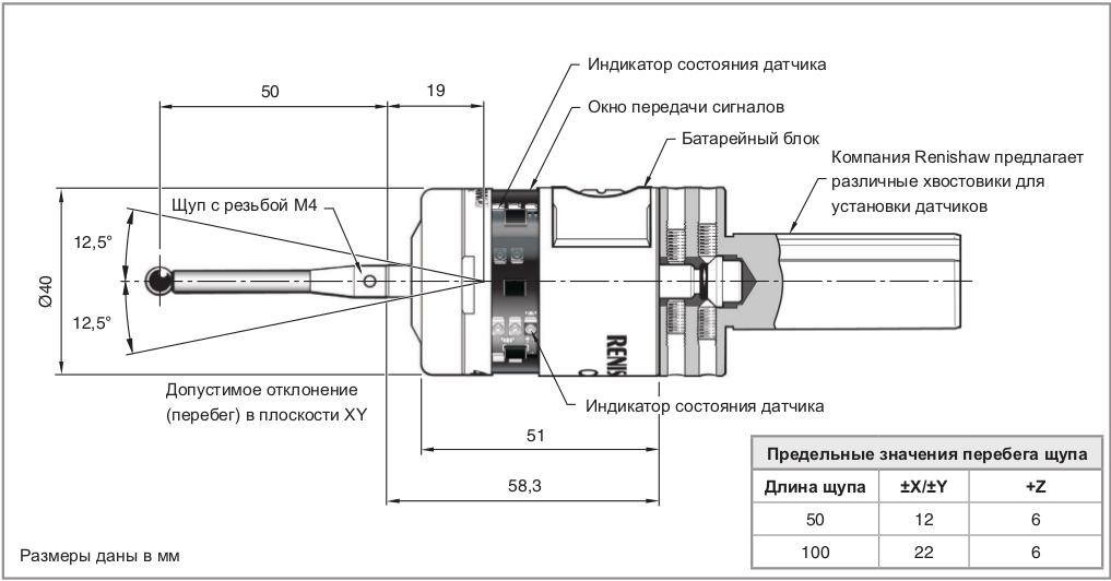 | Рекомендуемые щупы | Керамические, длиной от 50 до 150 мм | ||