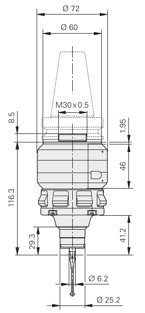 В зажимной патрон датчик устанавливается вручную или при помощи автоматической смены инструмента. В зависимости от циклов измерения системы ЧПУ, датчик может в автоматическом или в ручном режиме выполнять следующие функции: